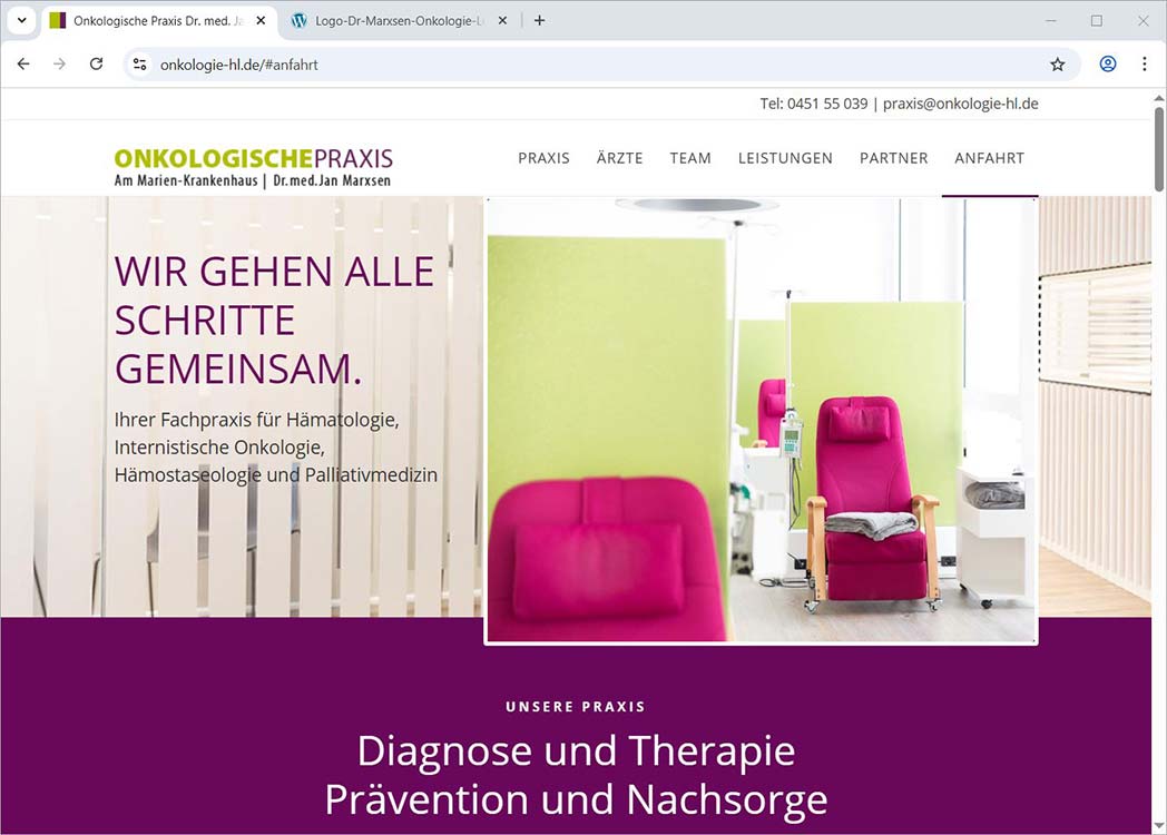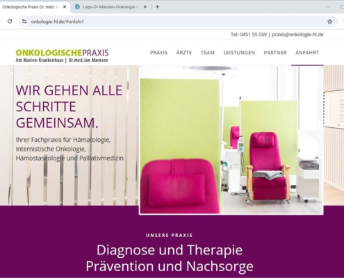 Für die Neueröffnung seiner Praxis für Onkologie suchte Dr. Marxsen nach einem frischen, positiven Auftritt – als Gegenpol zu den oft ernsten Themen seines Fachgebiets. Schon bei unserem ersten Treffen wurde deutlich, wie wichtig Dr. Marxsen eine positive, zugewandte Atmosphäre ist – sowohl im persönlichen Umgang als auch in der Gestaltung seiner Praxis.